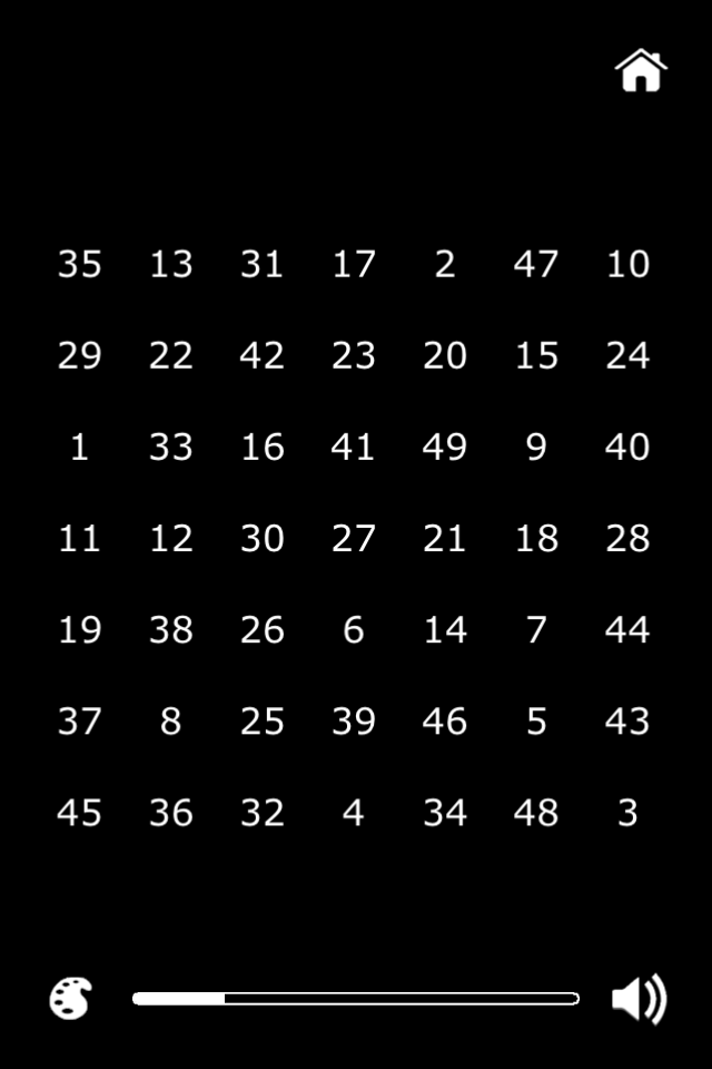 You need to select all the numbers in the correct order in a 2x2-9x9 grid as fast as you can. The difficulty of the game is gradually increasing with the grid size.